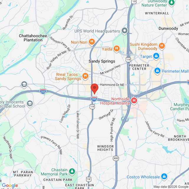 Áha OT is located in the heart of Sandy Springs - right near the junction of I-285 and Roswell Rd.